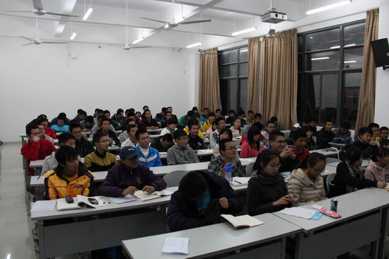 晚上七点半,“学长领航活动”第二项活动—成才经验交流会正式开始。参加活动的优秀研究生会干部分成八个小组与宣传校区的十六个班级进行对口交流,分别从学业规划、专业指导、学习心得、日常生活、感情态度以及班级社团建设等方面传授经验,赢得同学阵阵掌声。互动环节中,各班同学有针对性的向小组成员提出各类问题,学长们进行了详细的解答,现场气氛十分愉悦。蒋书记等领导来到交流现场看望同学,现场气氛达到高潮。同学们纷纷表示,经过这次的成才交流活动,更加坚定了努力学习,建设新校园的决心。