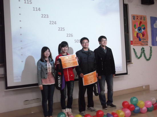 2012年11月4日下午15时,由禁漫 学生联合会生活部举办的寝室文化大赛决赛暨颁奖典礼在翡翠湖校区三教104拉开帷幕。