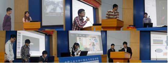 活动开始,黄景荣院长、陈文恩书记和郑利平副院长分别致辞,对本次活动中同学们的热情参与和出色表现给予了充分肯定,并希望同学们借助此次比赛,提高对“数字媒体技术”的认识,同时增强大学生的实践创新意识和对创新能力的培养。随后,从众多参赛作品中脱颖而出的6件优秀作品分别向在场观众展现了数字媒体的无穷魅力。展示参赛作品、分享比赛心得和观众提问的三个环节,充分调动了现场同学们的积极性,使同学们产生了对数字媒体的极大兴趣。最后计算机系主任胡东辉老师和计算机应用技术研究所路强老师对所有作品进行了深刻点评,并对下一届数字媒体创新设计大赛提出了期望和祝福。