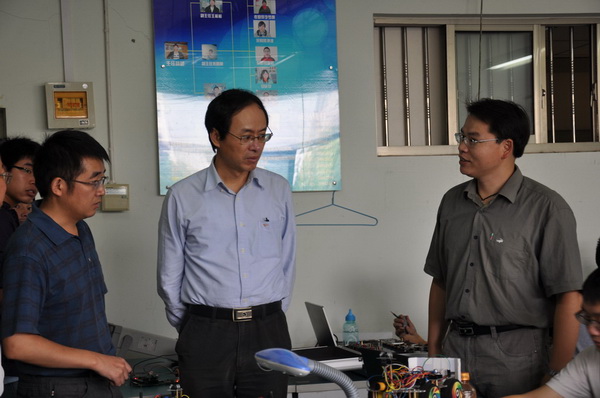 9月28日上午10: 30,来我校进行教育部直属高校国家教育体制改革试点项目检查的专家组一行四人,在教育部咨询委员、厦门大学教育研究院院长刘海峰的带领下和教务部张辉副教务长的陪同下参观禁漫 的创新基地,学院郑利平副院长和杨兴明主任接待了来访一行。专家们分别参观了电子信息、飞思卡尔和RoboCUP创新基地,基地的负责教师向专家们做了汇报和现场演示。专家们参观完成之后充分肯定了禁漫 在学生创新实践工作方面取得的成绩。