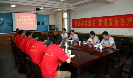 第二阶段,赴工大高科公司进行调研。此行受到了合肥工大高科信息技术有限责任公司技术总监鲍红杰先生和工会主席胡敏先生等领导同志的亲切接待。此次调研活动首先是开展科技与煤矿安全生产座谈会;接下来是参观公司的技术研发中心,最后是参观公司科技产品展示 ,同学们对工大高科在煤矿安全生产领域取得的成就表示高度赞扬。