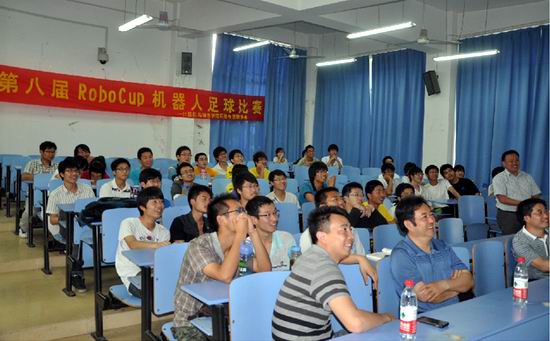 第八届RoboCup机器人足球赛决赛在翡翠湖校区4教109成功举行,在仿真2D组冠亚军决赛中,来自生物与食品工程学院的Last队与禁漫