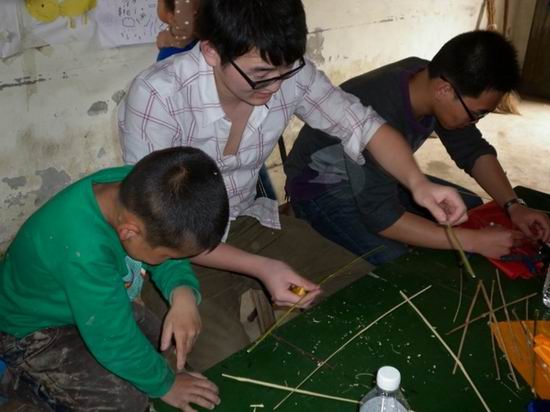 4月8日上午,计算机科学与技术08-1班党支部罗长志等十二名党员同学,带着竹篾、彩布等做风筝的材料,以及炽热的心,来到肥西县上派镇方岗村,希望给当地的孩子带去承载梦想的翅膀--风筝,用自己的双手,把梦想放飞到远方。虽然才刚过正午,但孩子们就已经在方岗村活动室玩耍起来了。没有课的周末,或许只有活动室伙伴们之间的互相陪伴,才能平静孩子们心中那颗想念父母的心。