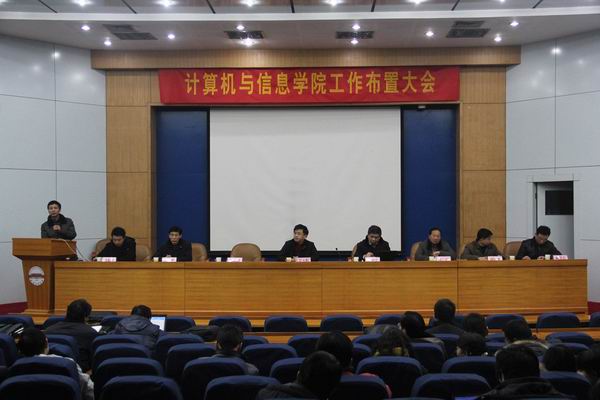 首先,行政副院长宣读了行政任免文件和办公室人员的岗位分工文件;吴玉程副校长作简短发言,通报了学校寒假工作会议的指示精神,并从学科建设、科研投入、人才培养、师资队伍建设等方面对学院新学期工作进行了指导。