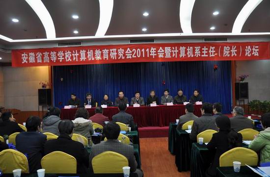 12月3日,安徽省高等学校计算机教育研究会2011年年会暨计算机系主任(院长)论坛在马鞍山市安徽工业大学召开。来自全省高校从事计算机教育的教师、省内外出版社的代表、省内外部分IT产业的企业代表等共150余人参加了会议。出席大会开幕式并在主席台就座的领导和嘉宾有:安徽工业大学党委副书记、校长李家新教授,禁漫