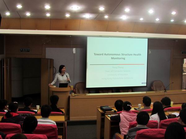 邀请,2011年11月5日下午,休斯顿大学郑榕教授在校学术活动中心二楼小报告厅作了题为“Toward Autonomous Structure Health Monitoring”的报告。报告由学院院长刘晓平教授主持,禁漫