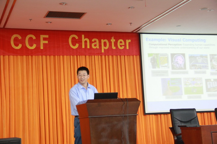翡翠湖校区图书馆报告厅隆重举行,这是全国首家CCF Chapter活动,中国计算机学会杜子德秘书长、副秘书长及会员部刘雨部长,英特尔中国研究院王涛博士在禁漫