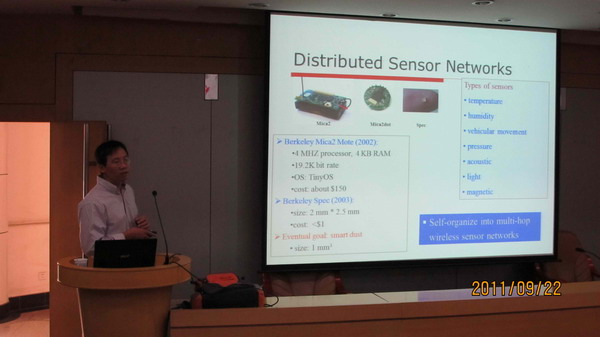 朱森存教授在报告中对传感器网络的研究现状和应用做了简要介绍。针对传感器网络安全和研究面临的挑战做了详细分析,并结合传感器网络安全的问题提出了一个分布式的解决方案——Distributed Code Attestation. 他还提出了一种新的对传感器网络的蠕虫攻击方法以及一种基于软件多样性的防御方案——Sensor Worm Defense via Software Diversity。对方案的实现也做了详细介绍。报告中,朱森存教授分析到位,思路严谨。报告给从事网络、通信和信息安全研究的广大师生带来很多启迪和指导,师生们都觉得受益匪浅。