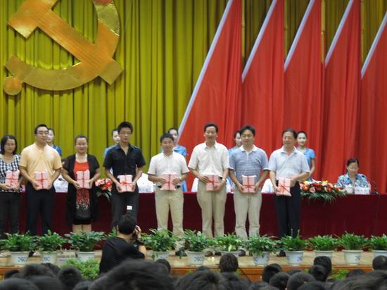在举国上下热烈庆祝中国共产党90华诞之际,张效英书记代表校党委向全校党员及参加入党宣誓的新党员表达了亲切的问候与祝贺。徐枞巍校长宣读了合工大党组字『2011』54号表彰文件,禁漫