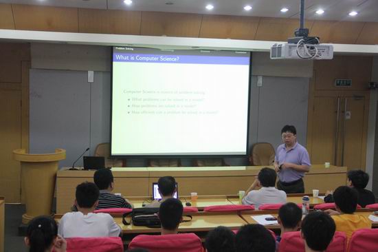 报告会由刘晓平院长主持,校质量管理与评估办公室胡学钢主任、杨学智副院长、郑利平副院长、王浩教授等学院的相关领导及师生参加了这次报告会。傅育熙教授首先对计算机科学中问题求解中遇到的三个问题进行了总体的阐述,然后使用十分形象的比喻“数学是研究万物与上帝之间的关系,计算机是研究万物与人类之间的关系”对计算机和数学直接研究问题的侧重点做出了总体的说明。最后总体对计算机和物理以及数学之间基础的不同进行了总结。