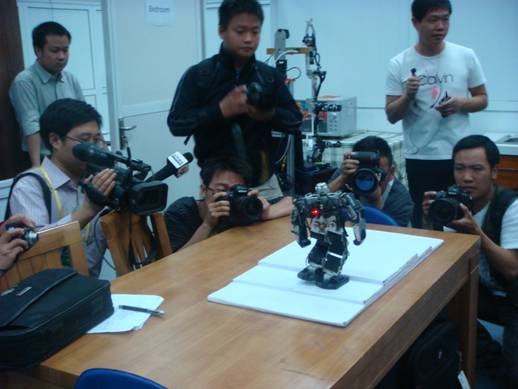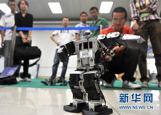 5月21日-22日,2011中国服务机器人大赛在中国科学技术大学上演,来自中国科大、上海交大、中山大学、上海大学等21所高校的60余支机器人队伍参加了该项比赛。我校仿人机器人HfutEngine受邀参加表演赛,表演了拿手的爬楼梯和舞蹈2个项目,得到了现场观众的阵阵掌声和喝彩。