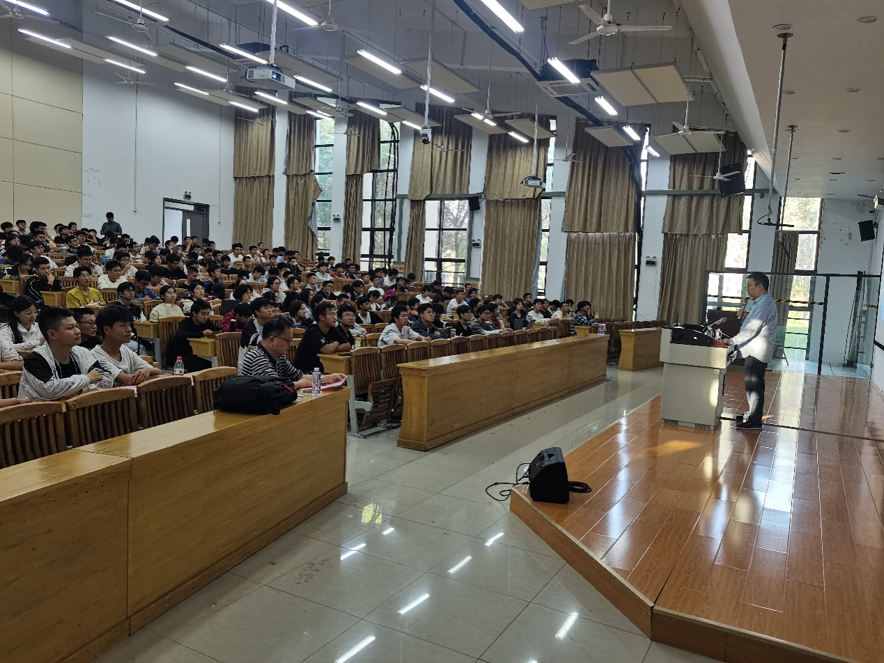 为深入推进产教融合工作,促进智能科学与技术专业本科生尤其是大一新生更好的了解人工智能前沿发展,2024 年 10 月 11 日,智能科学与技术系邀请了科大讯飞研究院执行院长、认知智能全国重点实验室副主任王士进在宣城校区新安341 教室做学术前沿报告,宣城校区计算机与信息系主任欧阳一鸣教授主持了此次报告会。约350多名本科生和多名教师参加了此次报告会,聆听了王士进院长的精彩报告。