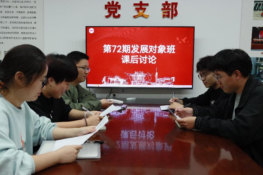 11月14日学院72期发展对象班研究生学员在翡翠湖校区科教楼A座5楼大厅会议室举行了围绕“结合研究生学习生活谈一谈如何在树立良好校风学风方面做表率”的主题讨论。