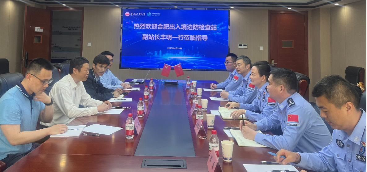 与合肥出入境边防检查站在科教楼A1106举行交流座谈会。合肥出入境边防检查站丰明副站长、边防检查处嵇德宝处长、总站边检处信息化王彦科长、合肥站执勤六队教导员蔡雷副处长、合肥站数据研判民警袁非副科长,学院吴共庆副院长、赵仲秋教授、卫星老师、杨毅老师等出席会议。会议由吴共庆副院长主持。