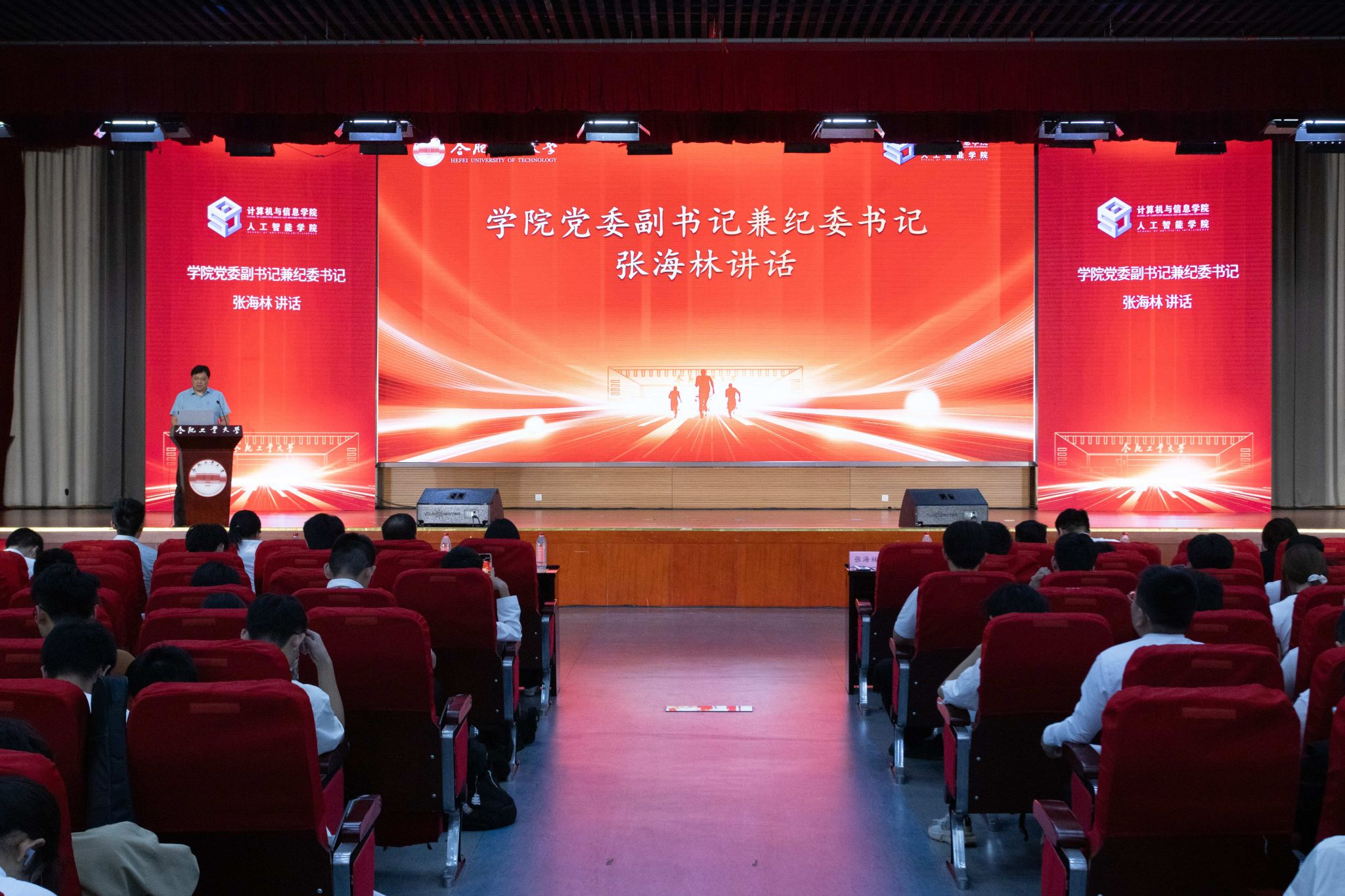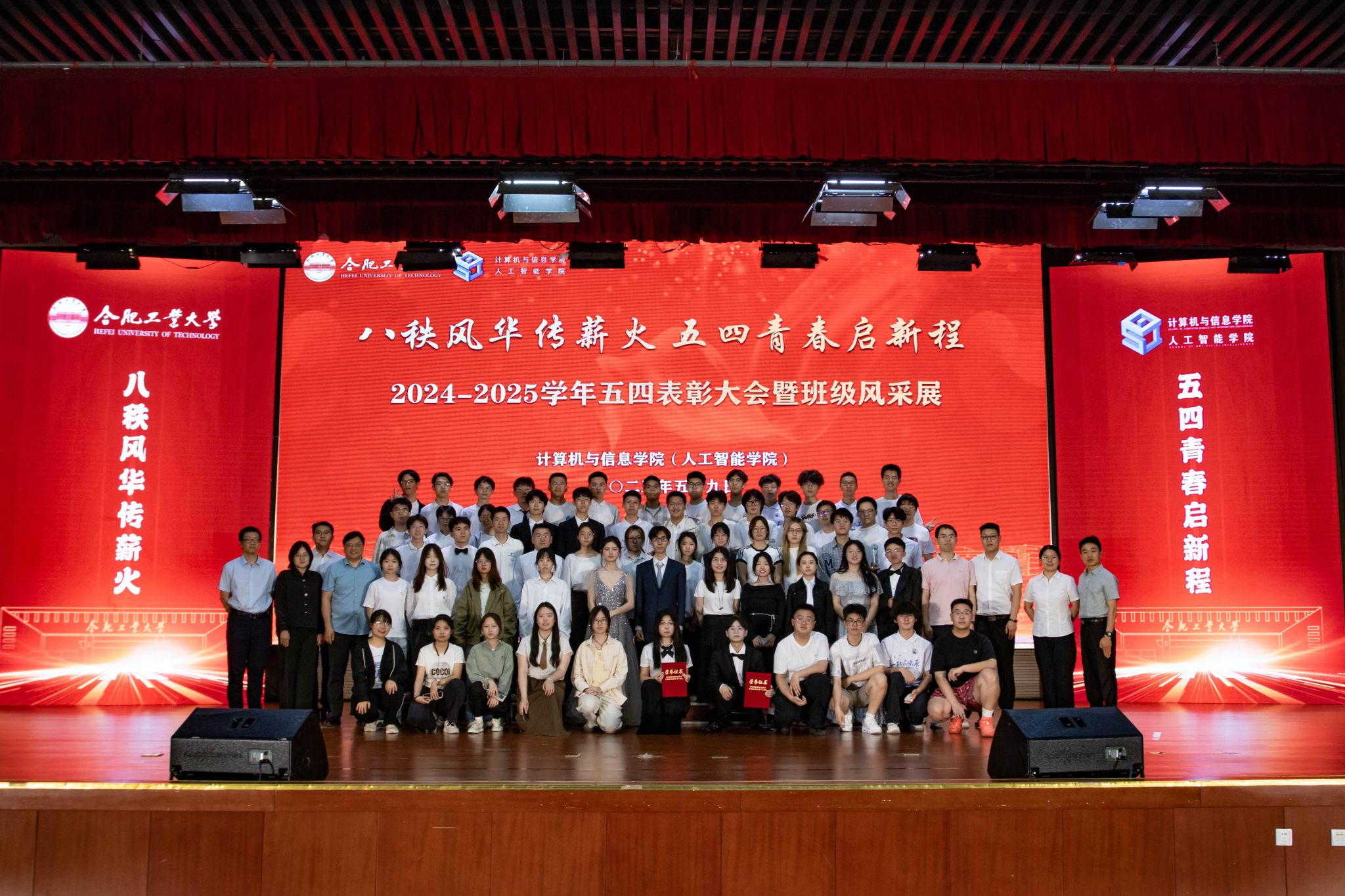 在翡翠湖校区科教楼二楼报告厅举行了“八秩风华传薪火,五四青春启新程”五四表彰大会暨班级风采展活动,表彰过去一年中涌现出的先进团支部与 先进个人。学院党委副书记兼纪委书记张海林、学院团委副书记叶璟、相关年级辅导以及2024级全体同学参加了活动。