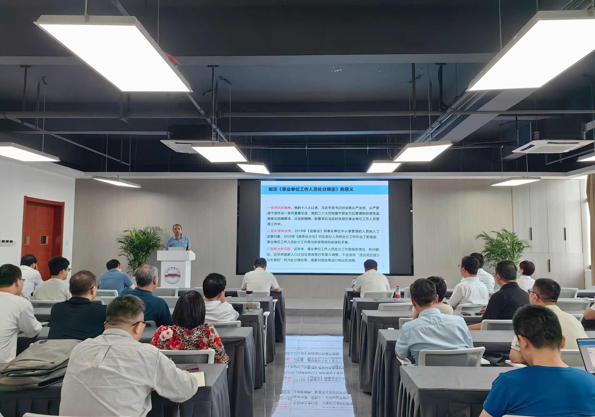 王辉副院长带领教职工学习《事业单位工作人员处分规定》,并就重点条款进行了解读,要求全体教职工依法履职、规范自身行为,做到廉洁自律、依法依规办事。