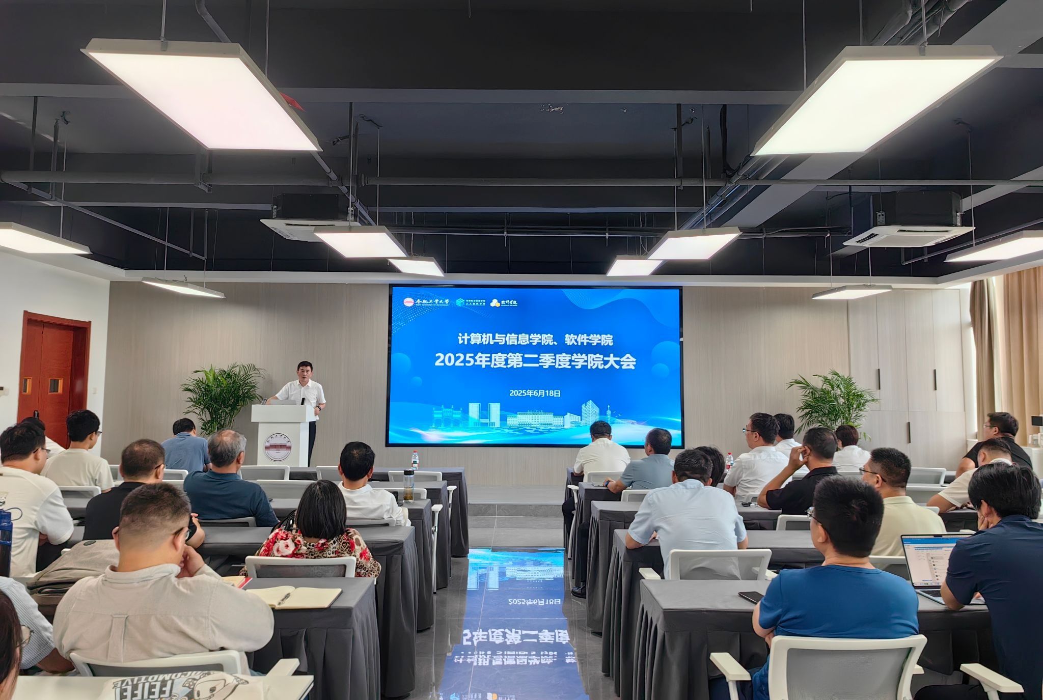 6月18日下午,学院在科教楼B501报告厅召开第二季度全体教职工大会。院领导班子成员及全体教职工参加会议。