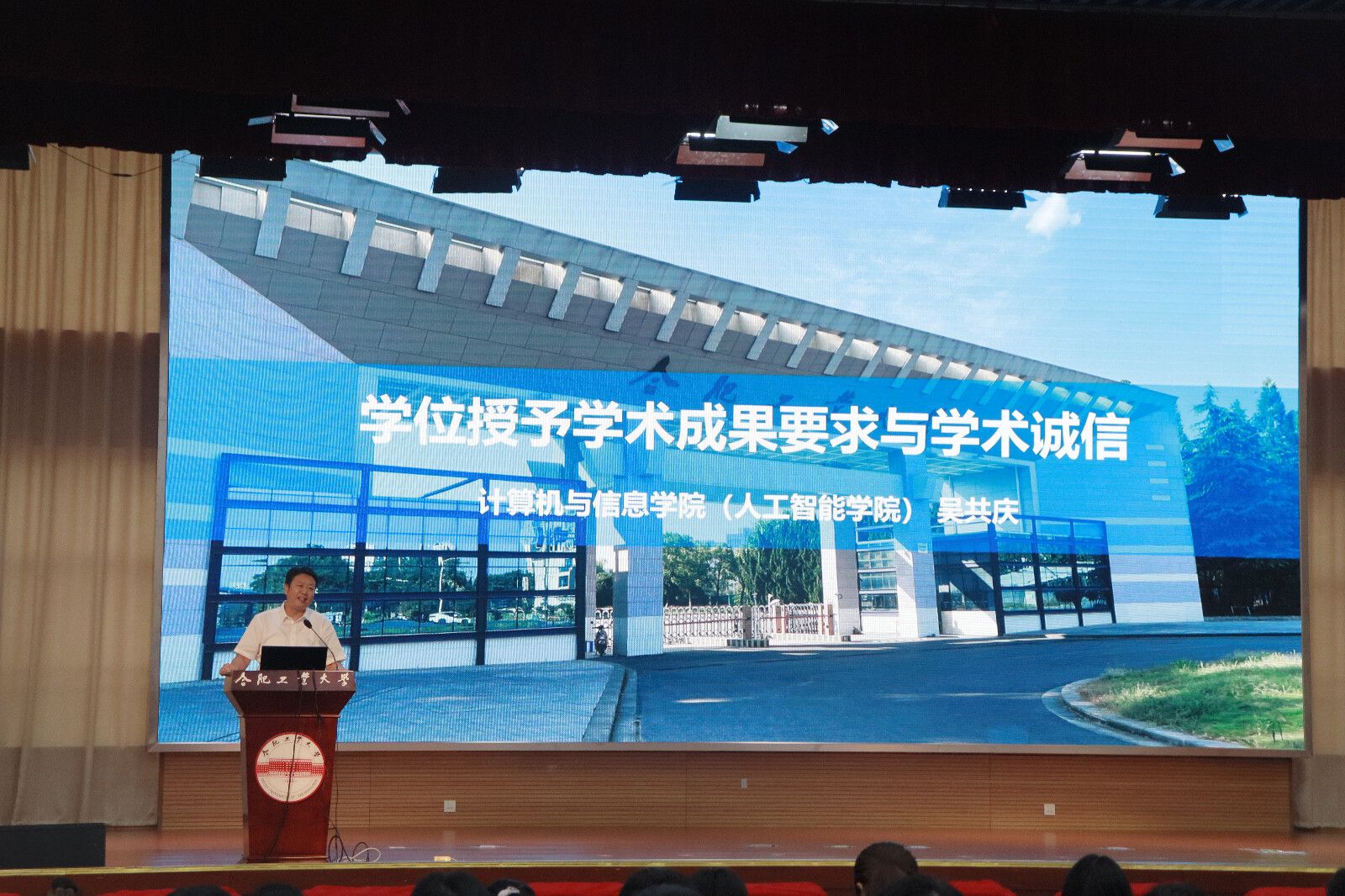 副院长吴共庆围绕学术规范与学位要求作专题讲座,重点强调了学术诚信是科研工作的生命线,提醒同学们从入学伊始即筑牢思想防线,坚决杜绝学术不端行为。他指出,研究生应扎实钻研、慎选课题、勤读文献,着力提升问题解决能力;在科研实践中遵循规范、守正创新,做到引用清晰、权责分明,尤其应理性利用AI工具,避免技术依赖替代自主科研思考。