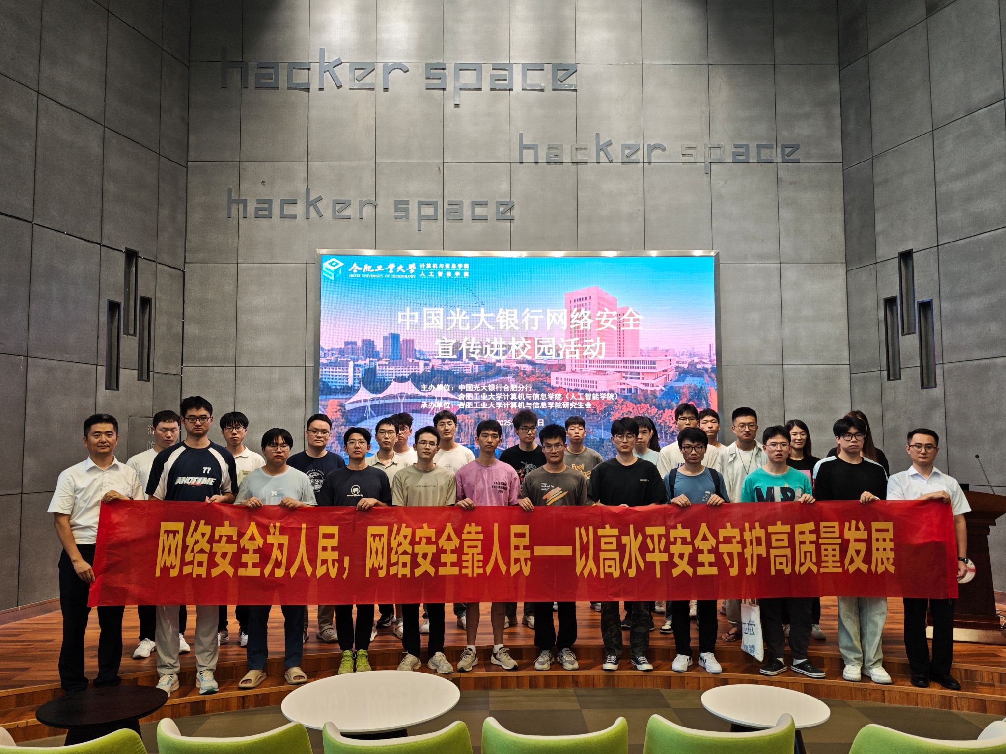 落实总体国家安全观、深化银校合作推进网络安全教育的重要实践。学院将持续开展形式多样的网络安全教育活动,营造清朗安全的校园网络环境,为培养高素质网络安全人才贡献力量。活动最后,学院师生与光大银行合肥分行专家合影留念。