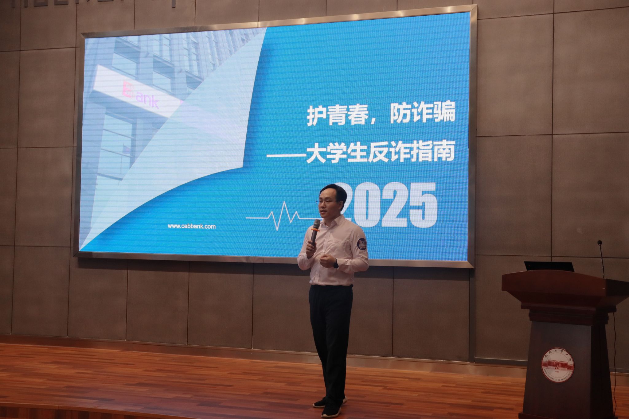 作为网络安全在校园场景中的重要体现,活动专门设置了反电诈专题讲座环节。光大银行反诈专家结合亲身经历,生动揭示了针对研究生群体的常见诈骗手法,如裸聊陷阱、刷单返利、协助洗钱、网恋交友等,深入解析诈骗话术与防范要点,以真实案例警醒学生,现场反响热烈。