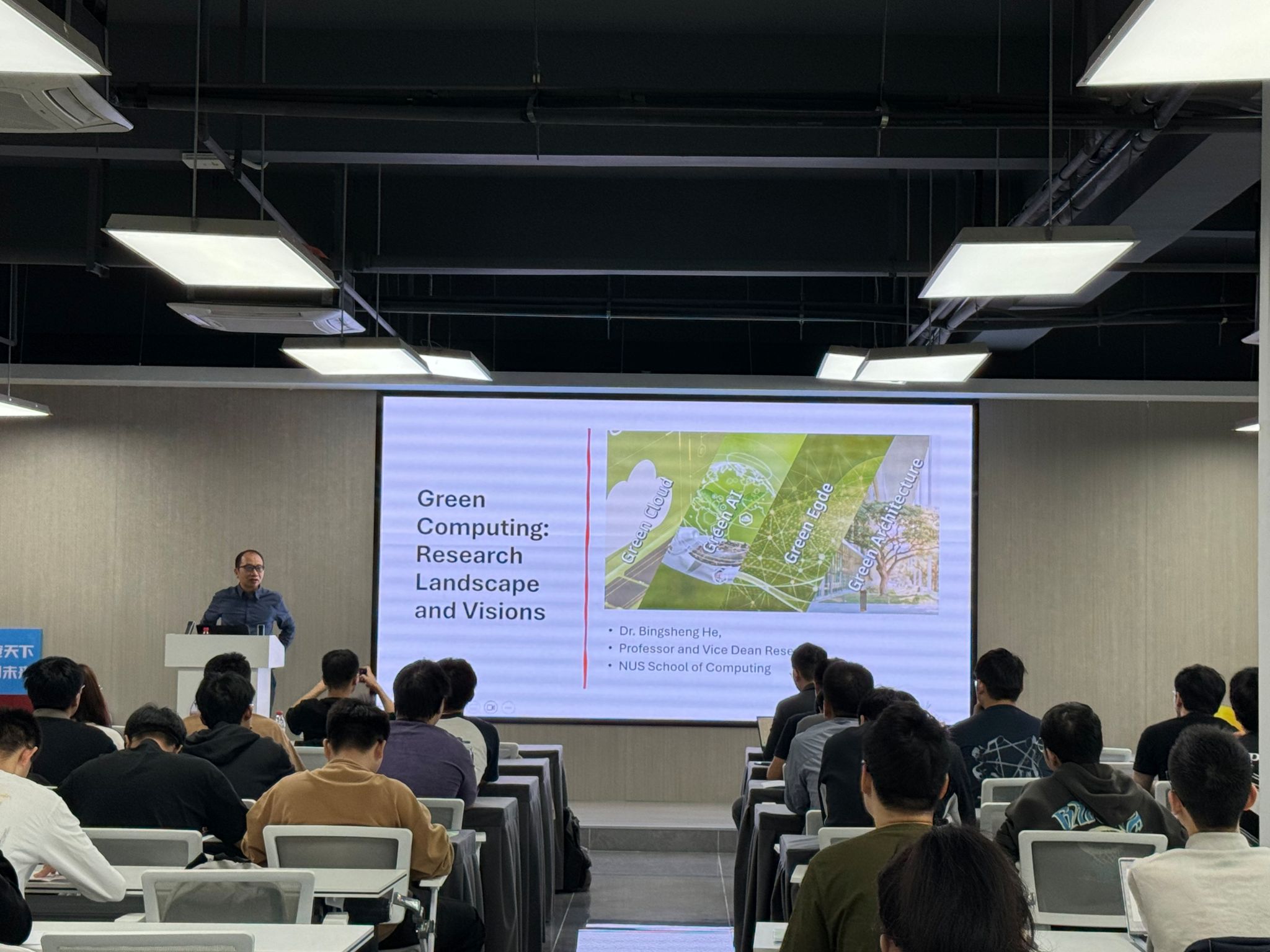 何丙胜教授首先系统介绍了新加坡于2024年开展的全国性绿色计算研究的主要成果。他指出,随着人工智能、云计算与边缘计算负载的快速增长,其能源消耗与环境影响已成为亟待关注的重要问题。何教授从技术架构、系统设计及政策引导等多个维度,分析了绿色计算面临的关键挑战,并提出在绿色体系结构、能效优化和可持续人工智能等重点方向上的发展路径。