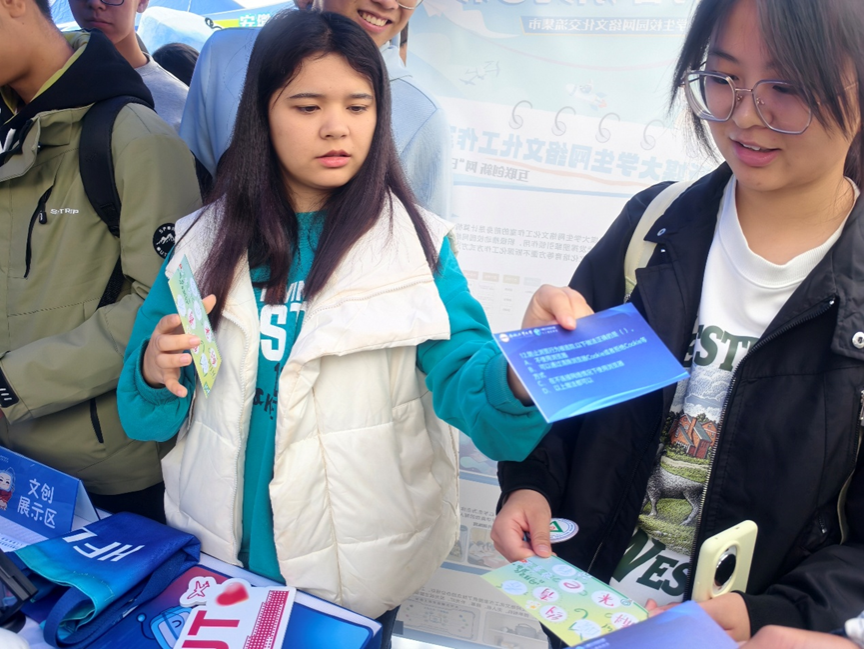 在翡翠湖校区东风广场举办大学生网络素养提升暨防范电信诈骗青春集市,吸引了全校众多师生积极参与。