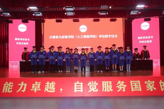 On June 15, the degree awarding ceremony for the 2023 graduates of the School of Computer and Information (School of Artificial Intelligence) was held in the lecture hall on the second floor of the Science and Education Building at the Feicui Lake Campus. Chen Gang, Deputy Secretary of the Party Committee of Hefei University of Technology, the leadership team of the college, members of the college degree evaluation committee, teacher representatives, and the 2023 doctoral, master's, and bachelor's degree recipients attended the degree awarding ceremony. The ceremony was presided over by Zhang Hailin, Deputy Secretary of the Party Committee and Secretary of the Discipline Inspection Commission of the College.
