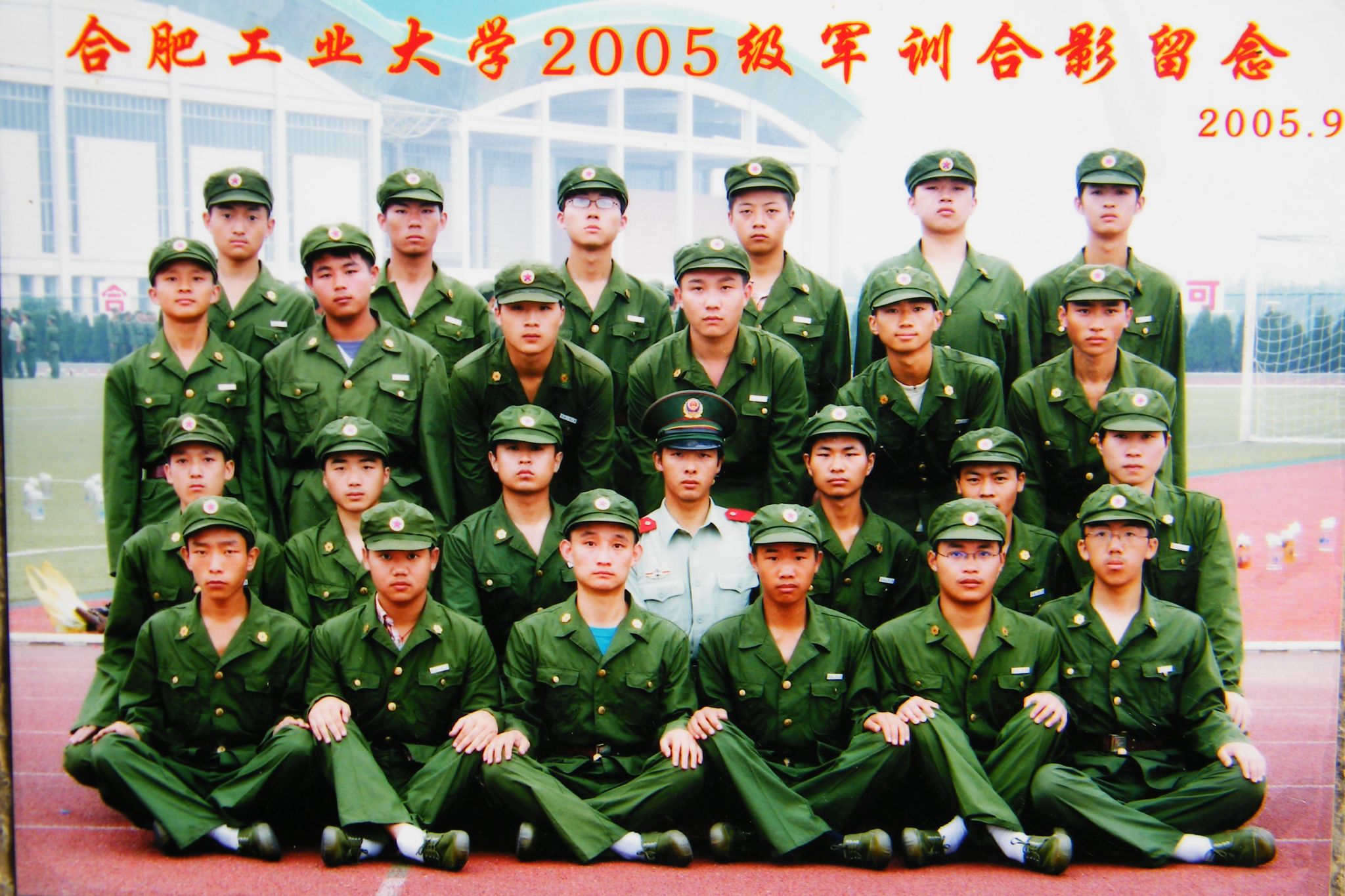 图:陈雷(第二排左起第三位)在校期间军训合影